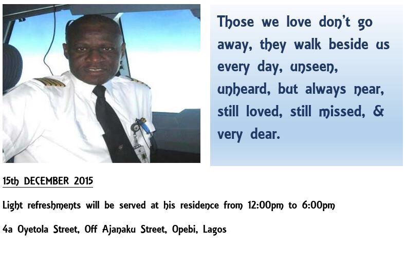 The Family and Friends would appreciate if Aviators can make out time to honour him with their presence on wed the 16th of December 2015.