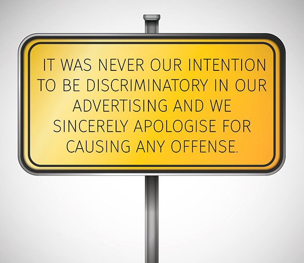The airline Monday posted the following message on Twitter: “It was never our intention to be discriminatory in our advertising and we sincerely apologise for causing any offense.”