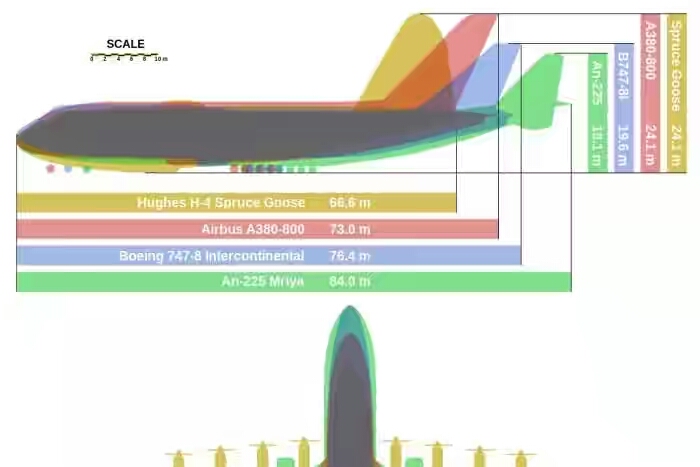 PHOTO: Scale map showing relative sizes of the Antonov 225. (Wikicommons: Clem Tillier)