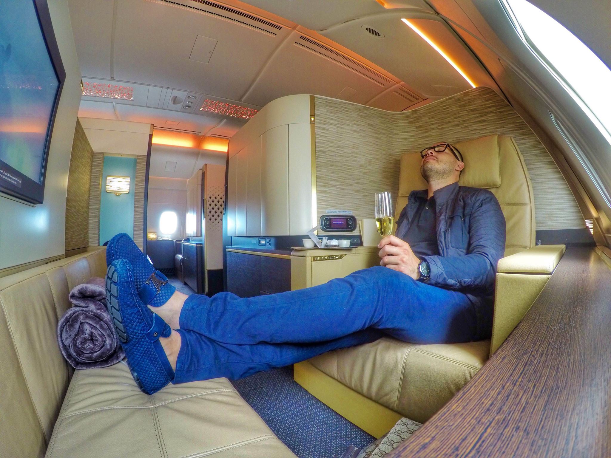“Feet Up – seems to be the norm in our First Class!”
