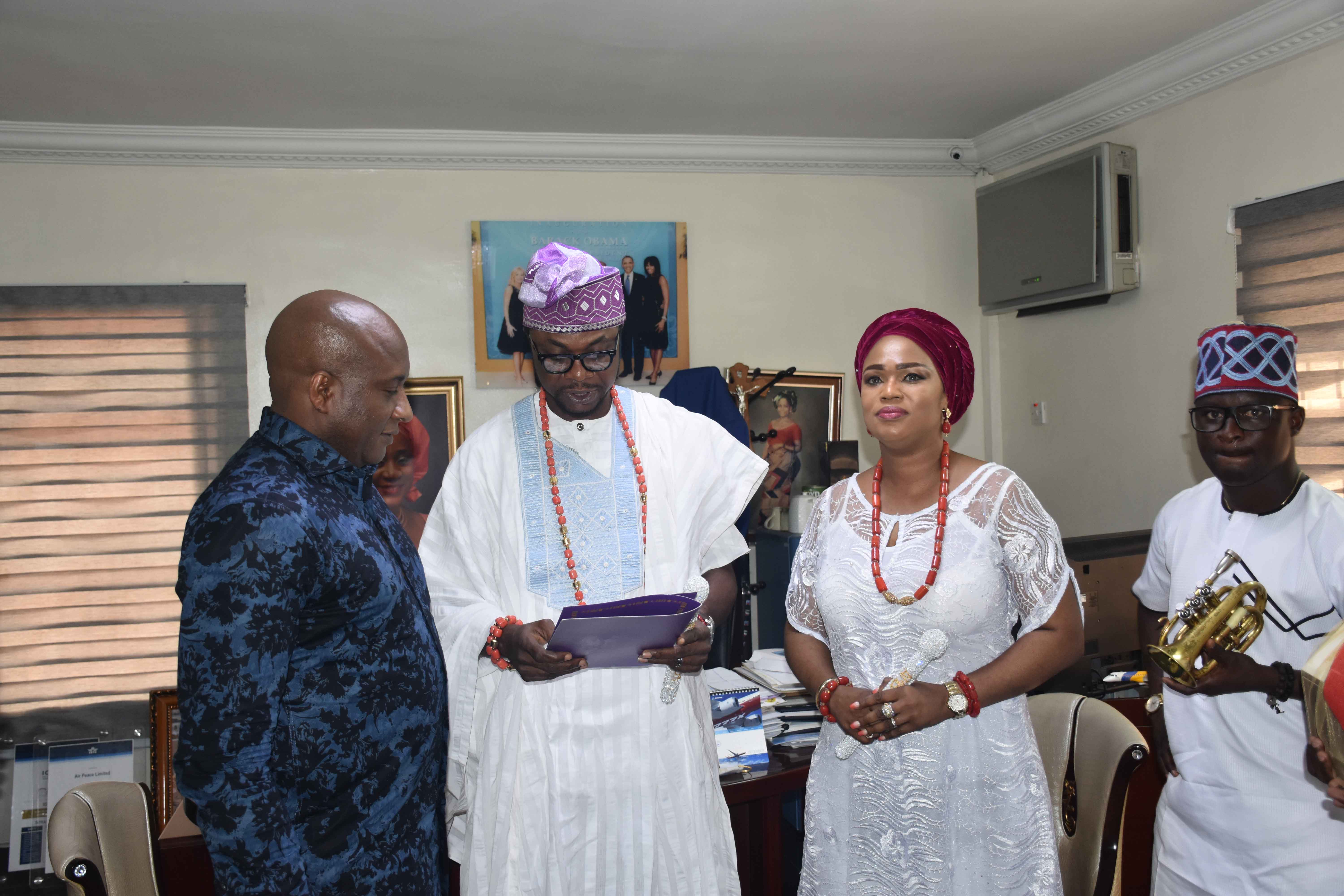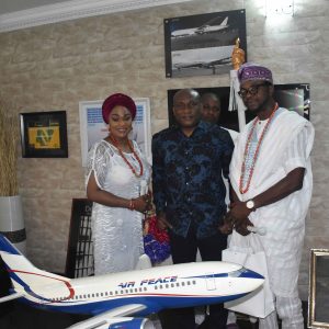 The monarch, who was represented by two of his Cultural Ambassadors, Alfred Oladotun Taylor and MorounRanti Ashabi, presented prized Ife artwork and other special gifts to the Air Peace boss as a “sign of my heartfelt appreciation of your person and your contributions to the throne of Oduduwa.”