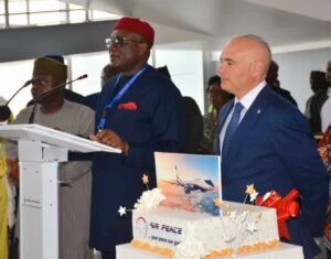 Speaking, the Governor of Ebonyi State, Engr David Umahi, commended Onyema for his strides in aviation. He added that the growth of Air Peace has shown that a Nigerian can make sustainable global inroads in aviation as Air Peace is solidly representing Nigeria in the international aviation community. He emphasised the socio-economic impact of the new route, especially in ‘religious tourism’.