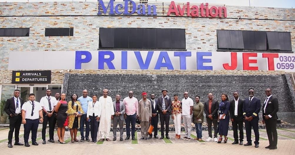 Capt. Solomon Quainoo the Director of MCDAN Aviation and the Group CEO Kweku Ampofi received the team at the MCDAN Group FBO.