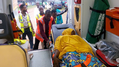 There was panic at Minna airport in Niger state after a woman slumped during the airlift of Hajj. Pilgrims to the Holy Land, Mecca, Saudi Arabia. She was immediately attended to by emergency officials who rushed her for treatment. See pictures below; NationalHelm
